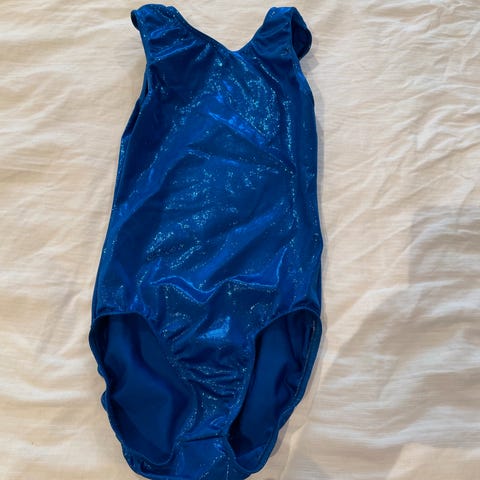 GK turndrakt for barn i blå farge, one size. Ermeløs modell med rund hals og glitrende steinmotiv foran. Drakten er laget i et glansfullt, elastisk stoff som gir god bevegelsesfrihet til turn og annen gymnastikktrening. Egnet til innendørs bruk i hall eller treningssal.