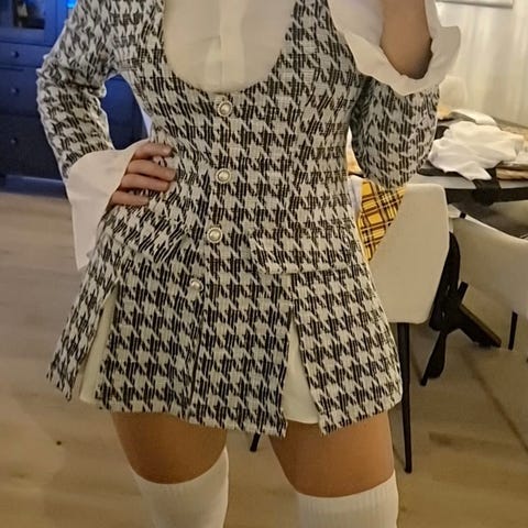 Pent og lite brukt blazer Vanlig til litt oversized i størrelsen. Houndstooth klassisk mønster. Den er i beige/brun/sort.