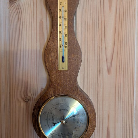 Vegghengt termometer i tre og metall - arvegods - gi bud