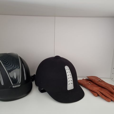 Ridesko og hjelm som er godt vedlikeholdt og lite brukt. Utstyret er valgt med fokus på sikkerhet, komfort og funksjon – akkurat det som betyr mest i hverdagen i stallen.