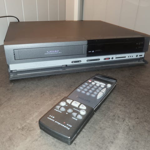 Philips VR630 videospiller i sølvfarge. Modellen er en VHS videospiller/opptaker med Turbo Drive-mekanisme og ShowView-funksjon for enkel programmering av opptak. Fronten har display for kanal og avspillingsinformasjon samt betjeningsknapper for blant annet start, stopp, spoling og pause. Enheten støtter NICAM HiFi stereo for bedre lydkvalitet. Medfølgende fjernkontroll gir tilgang til de viktigste funksjonene som avspilling, opptak, kanalskift og menyvalg. Egner seg til avspilling og opptak av VHS-kassetter tilkoblet TV via passende kabler. Scartkabel / orginal bruksanvisning og fjernkontroll medfølger. ( forbehold om feil i annonsen. (automatisk forslag fra finn) Prøvet og er i orden. Selges kr 950 / annet bud
