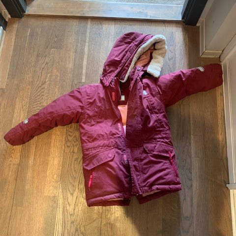 Didriksons Indre Kids Parka 2 parkas jakke i størrelse 120 for barn, unisex. Jakken er rosa og laget i polyester. Modellen er merket som 100 % vanntett med Didriksons STORMsystem. Den har hette, høy krage og forlenget ryggparti. Foran er det to store lommer med klaff. Jakken har refleksdetalj bak for bedre synlighet. Egner seg som ytterjakke i vått og kjølig vær.