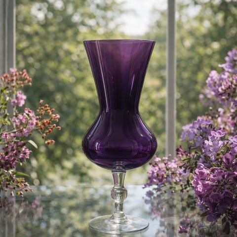 Hadeland, kunstglass, vintage, 1970-tall, retro, lilla, fiolett, designvase, norsk design, skandinavisk design, minimalisme, tungt glass, munnblåst glass, samlerobjekt, tidløs, interiør, dekor, prydvase, klassisk, mid century, modernisme, kvalitetsglass, håndverk, gaveidé, designklassiker, glasskunst, boligstyling, vinduskarm, statementvase, Hadeland Glassverk, samling