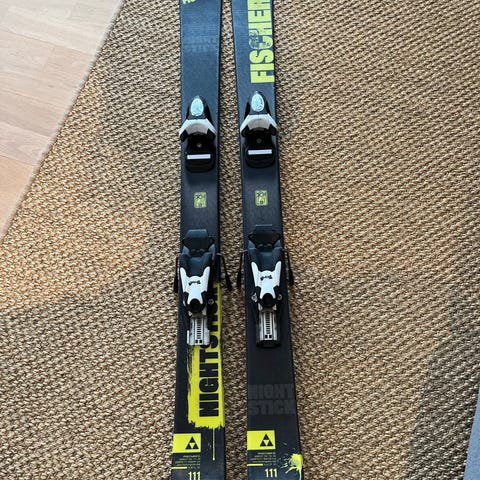 Twintip Fischer Nightstick alpinski med NX7 bindinger. 161 cm lange. Veldig gode park-ski!