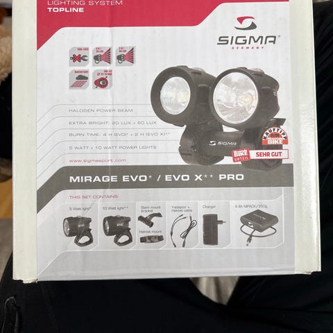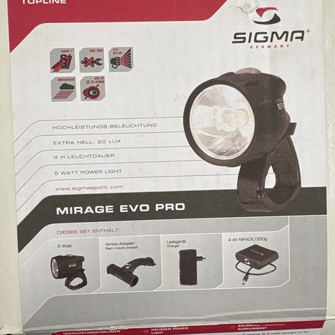 Sigma sykkellyktesett bestående av AURA 35 USB og NUGGET II som front- og baklys. Frontlykten er svart og festes til styret med en gummistrikk. Baklykten er rød og festes til setepinnen eller rammen med en elastisk ring. Settet sørger for belysning og synlighet når du sykler i mørket eller i dårlig sikt. Passer til de fleste vanlige sykler med runde rør som båndene kan festes til. Begge lysene kan lades med et mikro-USB-kabel.
