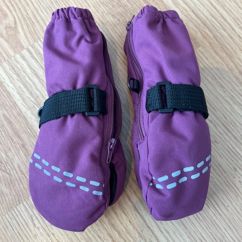 Jeg selger et par votter med tykt fôr fra Reflex. De er i god stand, varme og vannavvisende. En stropp over håndleddet for stramming gjør at den sitter godt. Glidelås på siden gjør den enkel å ta på.