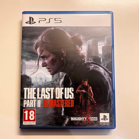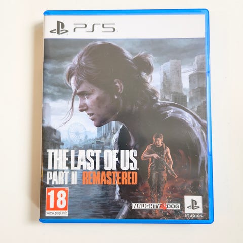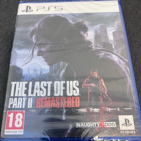 Sony The Last of Us Part II Remastered Playstation 5 spill på fysisk disk. Spillet er en remastret utgave til PS5 med forbedret grafikk og ytelse sammenlignet med tidligere versjoner. Aldersgrense 18 år, som angitt på omslaget. Leveres i original PS5-eske med plate og trykt informasjon i coveret. Egnet for bruk på Playstation 5-konsoll med platestasjon.