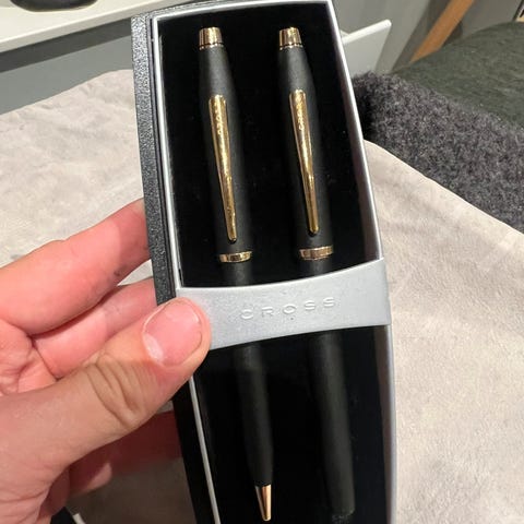 Ballograf kulepenn- og trykkblyantsett i hvit farge. Settet består av én kulepenn og én trykkblyant med klips i metall, levert i etui med blå innside. Egnet til daglig skriving og notater på kontor, skole eller hjemme.