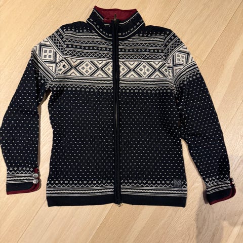 Selger en nydelig strikkejakke fra Dale of Norway, modell 8137 Lisletorg. Den er fra ca 2008, men knapt brukt. Jakken har glidelås, og knapper på mansjetter.
