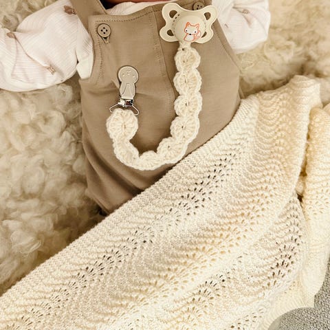 🧶 Håndheklet smokklenke i 100% økologisk merinoull