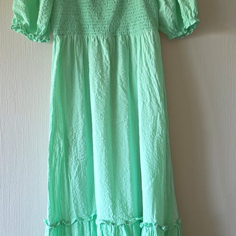 Nydelig sommerkjole fra Cubus i str S. Retro-preg og kreppet stoff. Kjolen er fotsid.
