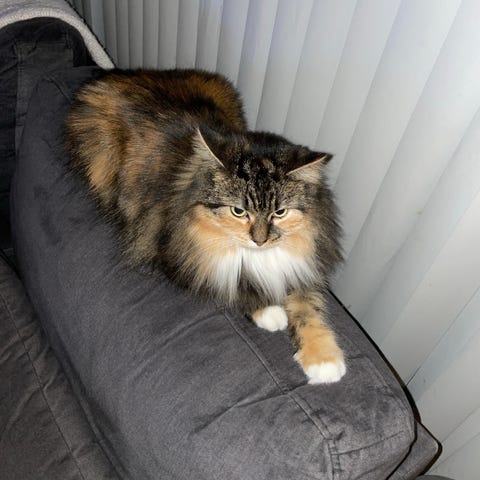 Jeg tok Kongen til meg da min sønn flyttet til storbyen, noe som ikke er ideelt for en katt som ham. Dessverre fungerer det heller ikke optimalt sammen med min perserjente, som ikke har akseptert ny «samboer». Hun har begynt å markere og bite etter ham, og derfor ønsker vi – kun av hensyn til begge kattene – å finne et nytt, trygt og kjærlig hjem til Kongen.