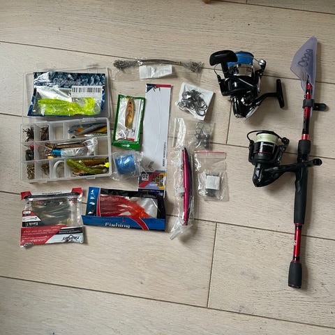 Jeg selger fiskeutstyr. Brukt. Jeg forstår ikke helt dette, så jeg selger det som det er.Prisen er omsettelig.