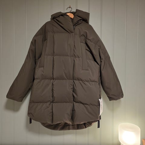 Spitsbergen Down Coat fra Blæst holder deg varm gjennom de kaldeste månedene, samtidig som 20 000 mm vannsøyle og teipede sømmer sikrer full beskyttelse mot snø og regn. Jakken har stor hette, lange ermer med strikk nederst og høye glidelås-lommer. Den lukkes med skjult glidelås hele veien ned i front. Jakken har en oversized passform, men det medfølger et avtagbart belte slik at du kan tilpasse midjen basert på ønsket utseende.