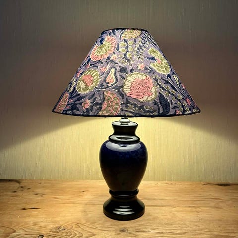 Burgunder keramikklampe med ny håndlaget bølgeskjerm