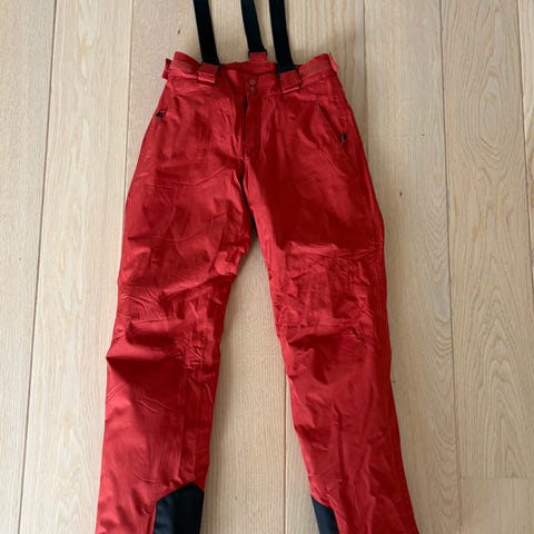 Selger en pen brukt skibukse med justerbar/avtagbare seler. Snølås nede ved foten. Borrelås i midjen så den kan tilpasses i livet. Lommer med glidelås. Forsterket i baken.