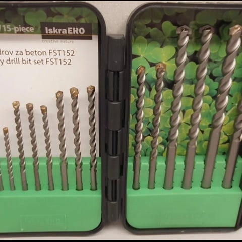 Iskra Drill Bitssett til betong, all størrelse står på bildet.
