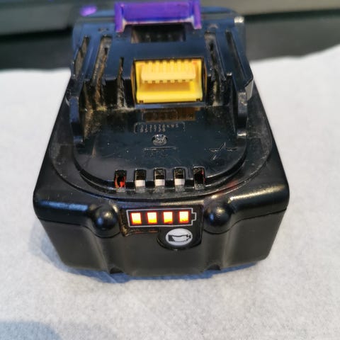 Pent brukt og testet – fungerer som det skal. Batteriet har ladeindikator og leveres med beskyttelsesdeksel på kontaktene. Normal bruksslitasje, se bilder.