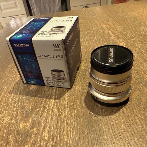 Meget pen med lokk og eske byttes i Olympus 12-40, eller 8-25.