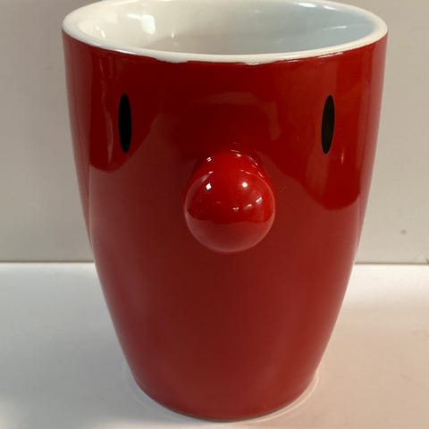 To hoptimist krus i rød og oransj