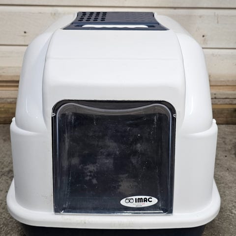 Enheten har beholder for tørrfor og integrert matskål i plast.