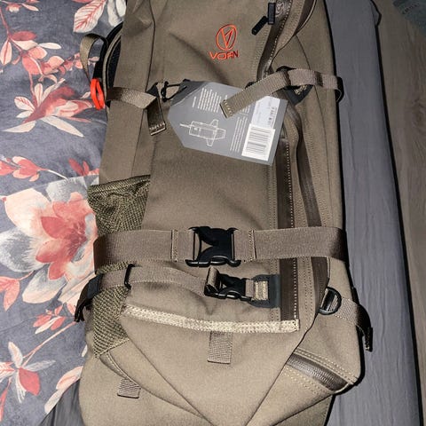 Nesten ubrukt VORN Hjort ryggsekk med god plass(42Liter), og utløser for rifle. Store rom og justerbare stropper. Sekken har polstret bæresystem med skulderstropper, brystreim og hoftebelte for bedre vektfordeling. Flere utvendige lommer gir mulighet for organisering av utstyr.