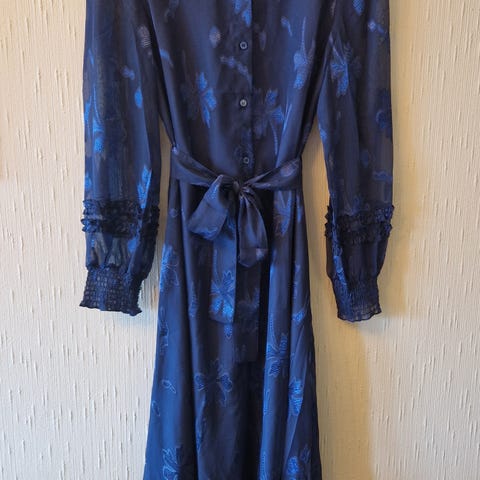 Lekker blå kjole med et spennende snitt, sydd i en bue som er lengre bak enn foran, utringet i samme bue som nede, bak. Stretch i stoffet og behagelig å ha på. Stilig Festkjole str S til S+. Merke SHEIN Selges kr 250,-(60)