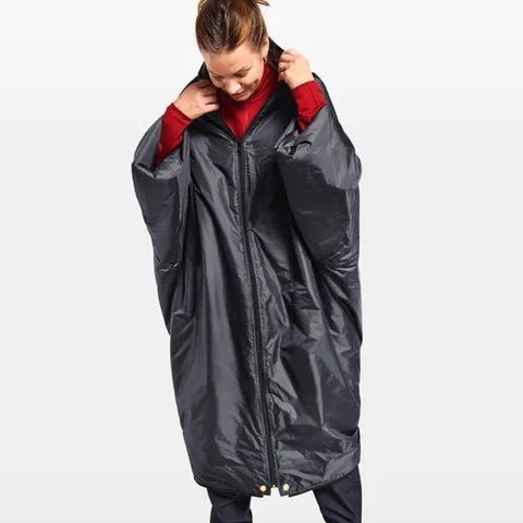 Helsport fjellduk med pakkpose. Brukt på mindre en 10 turer. Den fremstår som hel, alle glidelåser er i orden. Eneste å nevne er at duken har et bitte lite hull på 1 millimeter, helt nederst på duken ca 20 cm over bunn-nivå, som ikke påvirker hvordan regn holdes ute når man sitter i sekken.