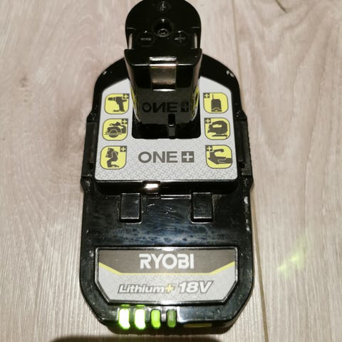Pent brukt, men testet og fungerende. Normal bruksslitasje, se bilder. Passer alle verktøy i Ryobi ONE+ 18V-serien.