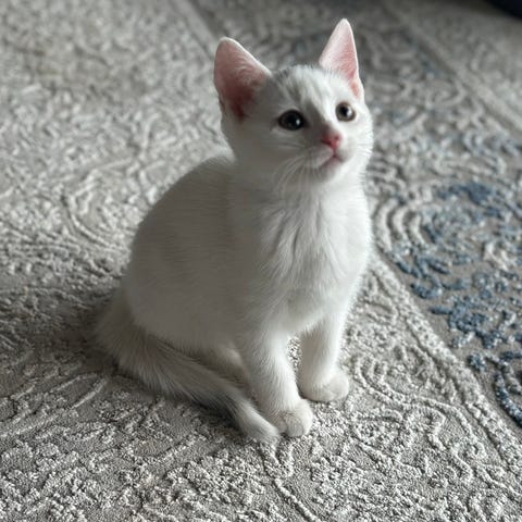 Spiser tørrfôr, våtfòr og flink til å gå i kattedo. Leken og kjærlig ❤️