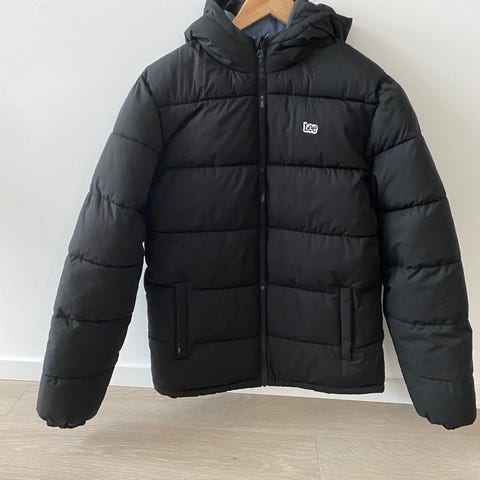 Innsiden har oransje fôr. Frontåpning med glidelås og glidelåslommer i siden. størrelse barn/ungdom 176 / 16.