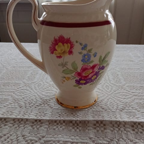 Stavangerflint, vakker mugge med trykt blomstermotiv. Ingen skade.