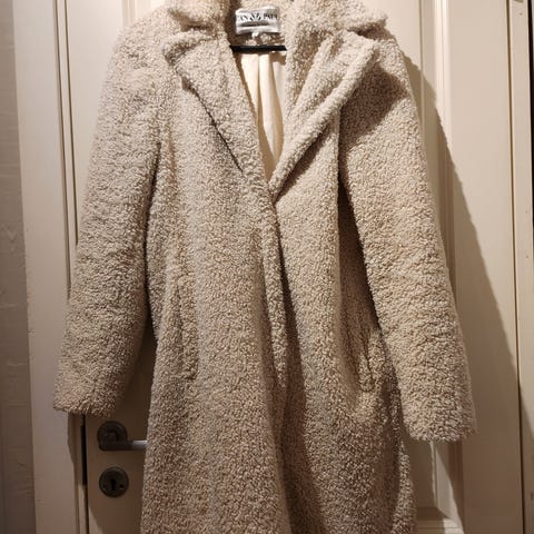 Jean Paul kåpe for dame i størrelse S. Kåpen er blå og laget i polyester. Modellen er en lang, vattert kåpe med hette og glidelås i front. Skråstilte sømmer gir et quiltet uttrykk. Kåpen har lommer i sidene og justerbare snorer i hetten. Egnet som yttertøy i kjøligere vær.