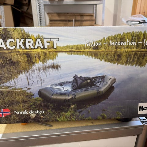 Følger med to årer (kano-type), kjøl, oppbevaringssekk og pumpesekk. Pumpesekken gjør den ganske lett å blåse opp.