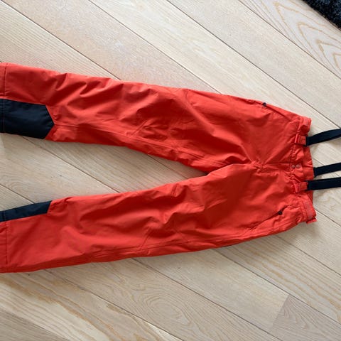 Selger en pen brukt skibukse med justerbar/avtagbare seler. Snølås nede ved foten. Borrelås i midjen så den kan tilpasses i livet. Lommer med glidelås. Forsterket i baken.
