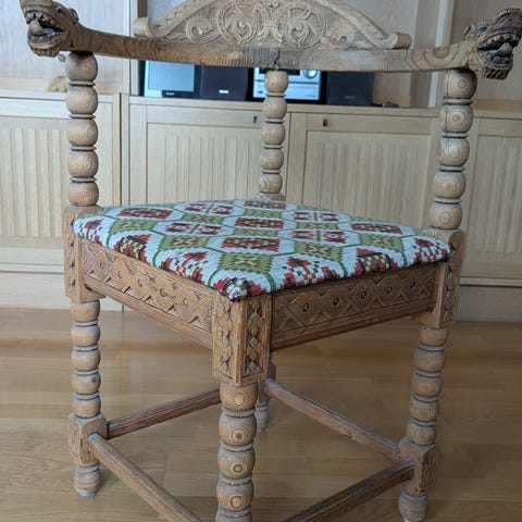 Drageformet gulvlampe tre antikk - arvegods - gi bud