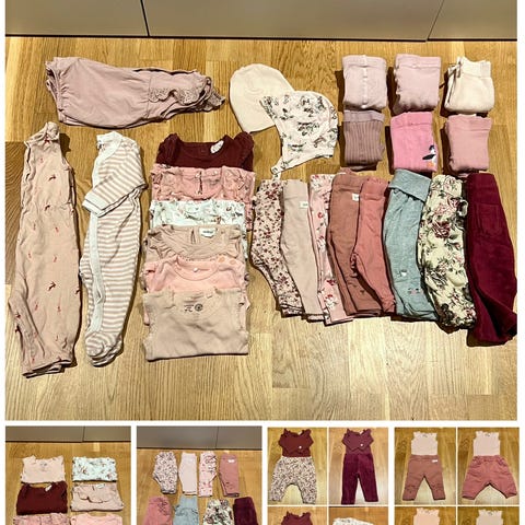Stor klespakke til jente str 56 💕 Pent brukt uten flekker eller hull slik jeg kan se det. Mye Newbie 🌸