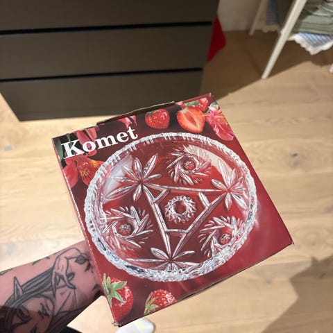 Holmegaard glass med motiv. Egnet til servering av små mengder drikke, for eksempel snaps eller likør. Leveres i original eske som vist på bildene.
