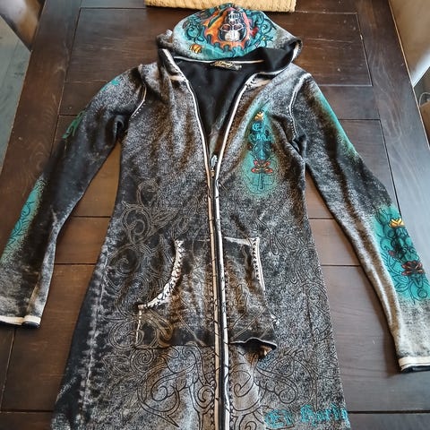 Dette er en ettertraktet Ed Hardy-modell som sjelden dukker opp i denne standen. Perfekt for deg som liker Y2K, vintage og statement-plagg.