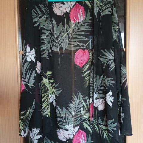 Kul genser i svart og glitrende rosalilla mønster. Myk og behagelig viskose. Stor størrelsen, men fin som oversized for flere størrelser.