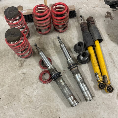 Originalt M-sport understell fra BMW 130i e87. Bestående av dempere og fjærer, støvbeskytter bak. Frontdempere har lekkasje. Alt kommer fra 2006 modell 130i km-stand 195000.