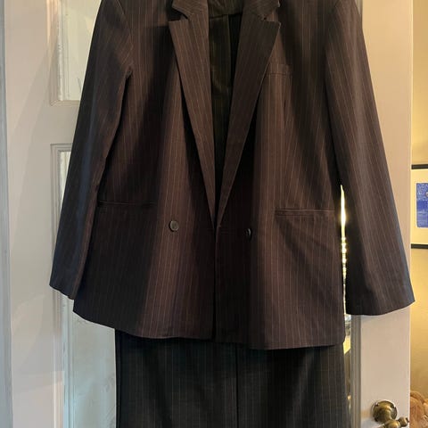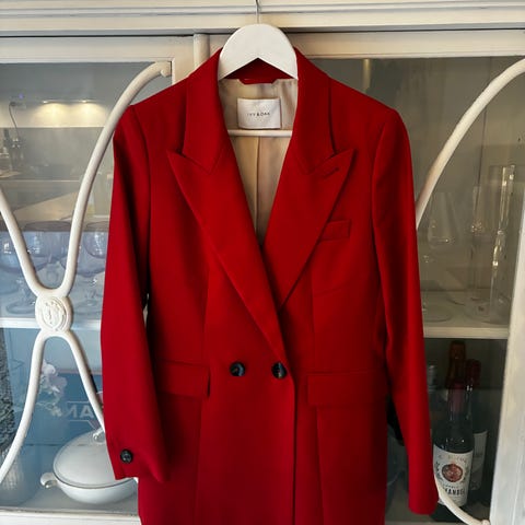 Dette settet består av en klassisk blazer og et matchende skjørt. Tidløst dansk design som fungerer like godt til hverdags som til finere anledninger.