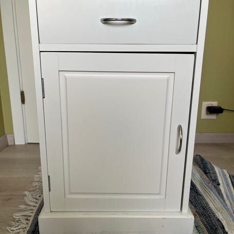 Lite skrivebord 50 cm x 90 cm fra IKEA. Veldig praktisk hylle bak med god plass til kabler. Må hentes. Uten katt.