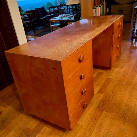 Nattbordene inneholder hver 2 skuffer og en «hylle» (se bilde)