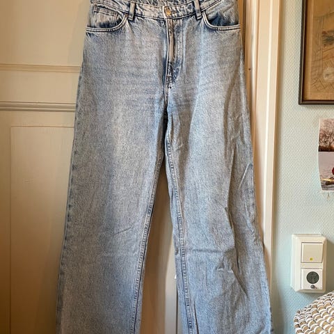 Kule jeans fra Monki i japansk stil: tett, rett modell med lengde til ankelen, litt løse i lengden og sitter veldig bra på kroppen. Passer størrelse M–L.