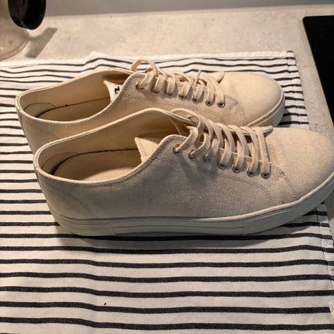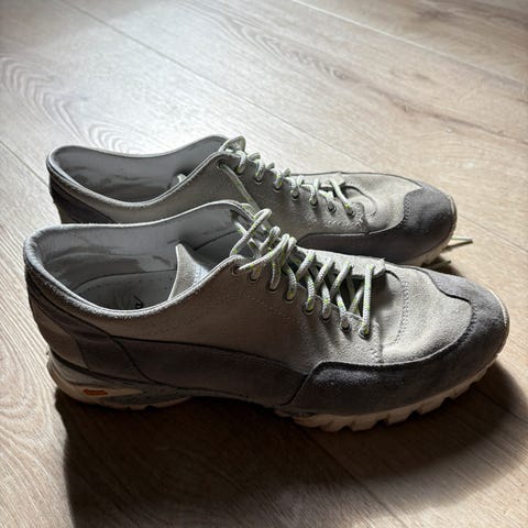 Skoene er kun brukt 2–3 ganger, og kan enkelt vaskes/impregneres for å fremstå som tilnærmet nye igjen.
