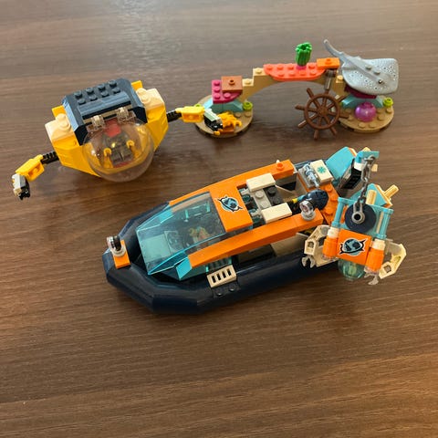 LEGO City lekesett med stort forskningsskip, helikopter, hai og flere minifigurer. Settet inkluderer forskningsfartøy med dekk og kran, helikopter, mindre undervannselementer og tilbehør til figurene. Egnet for bygging og lek med maritimt og utforskende tema.