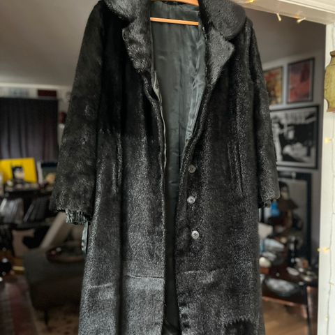 Nydelig vintage pelskåpe i saueskinn selges. Den er veldig pent brukt, har ingen skader hverken på pelsen eller fôret. Det følger med et skinnbelte, det er beltestropper i sidene, men jeg synes den er finest uten belte. Passer small/36. Jeg har fått flyttet noen av knappene for at den skulle passe bedre til meg, det er gjort hos skomaker. Knappene kan lett flyttes tilbake hvis der er behov for det.