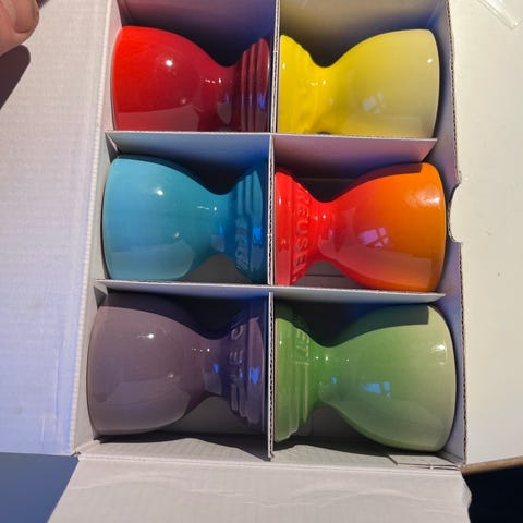Le Creuset, eggeglass, steingods, keramikk, frokost, kjøkken, design, blå, vintage, retro