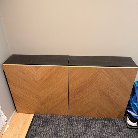 Bestå hyller/skap/skuffer med høyglansete hvite dører